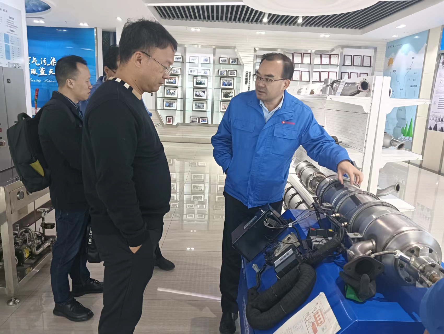 2023年11月29日,董事长章守朴先生拜访中自环保科技股份有限公司,期间参观了中自全自动的生产车间,与中自董事长陈总讨论了燃气发动机尾气后处理的相关问题,就后续的合作达成了